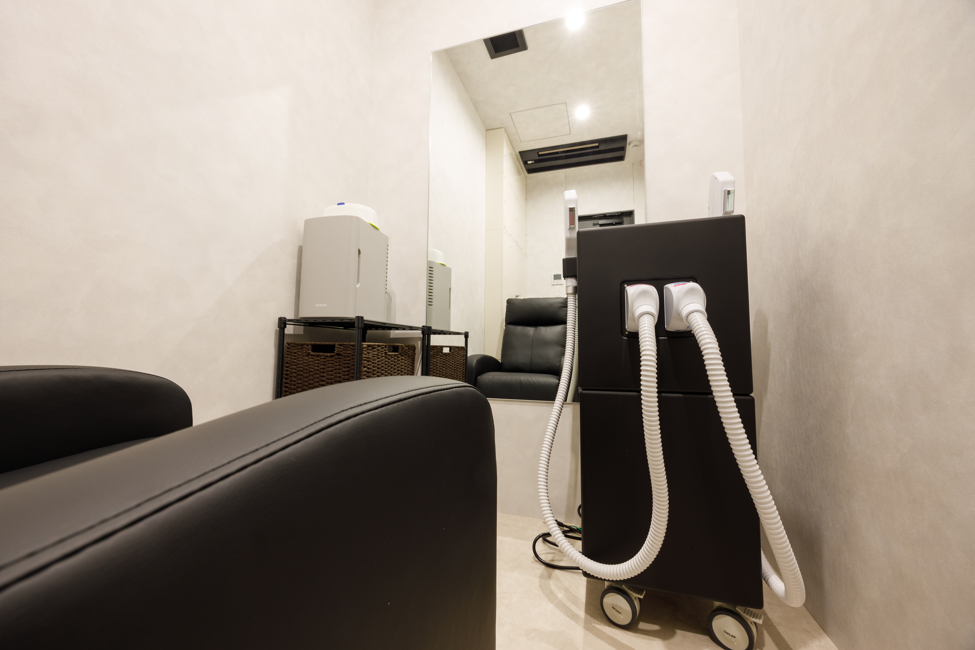 近年では男性、女性、子供も脱毛をする人が増えてきています。 脱毛をしたいけど、通うことがめんどくさい、自分の好きなタイミングで施術したい、脱毛の料金が高い、そのような悩みを解決する為に、社内に業務用脱毛器「キューブデュオ」を導入しました。男性用、女性用のハンドピースを分けて用意しており、衛生面も配慮しております。 従業員はもちろん、ご家族様にも安心してご利用いただけます。